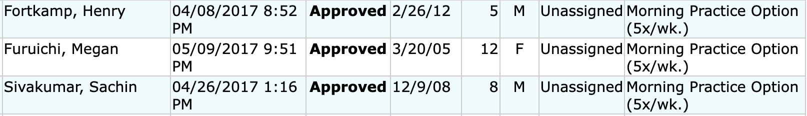 And here's five year-old-Henry's very first appearance on a Starz roster; he's nestled in right next to 12-year-old Future Coach Megan and 8-year-old Future Coach Sachin: