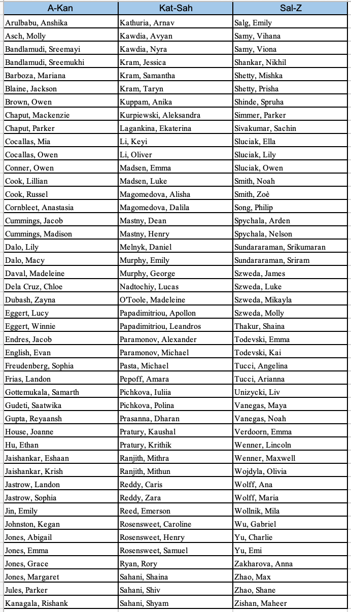 The following swimmers have been declared for this meet. No swimmers can be added at this time. If your swimmer is declared but an illness or emergency prevents his or her participation tonight, please email Head Coach Mary ASAP.