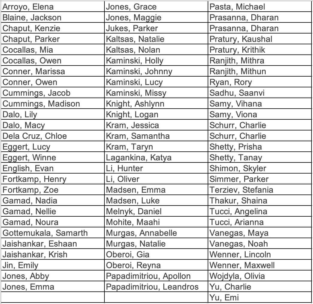 The following swimmers have been RSVP'ed by their parents for our End-of-Season celebration on Sunday. If you don't see your swimmer's name and he or she is planning to attend, please let me know immediately via return email. To ensure that the delivery of participation awards is as efficient as possible, we will only read the names of swimmers who are present at the event. If your swimmers will be there, we don't want to miss them!